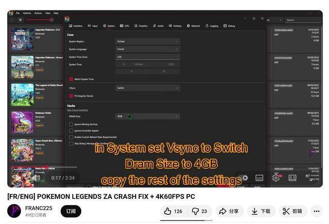不过,如果想突破Switch版的分辨率与帧率上限,就需要更强劲的系统支持。油管用户FRANC225已经分享了首个可将画质提升至4K、帧率解锁至60FPS的MOD。