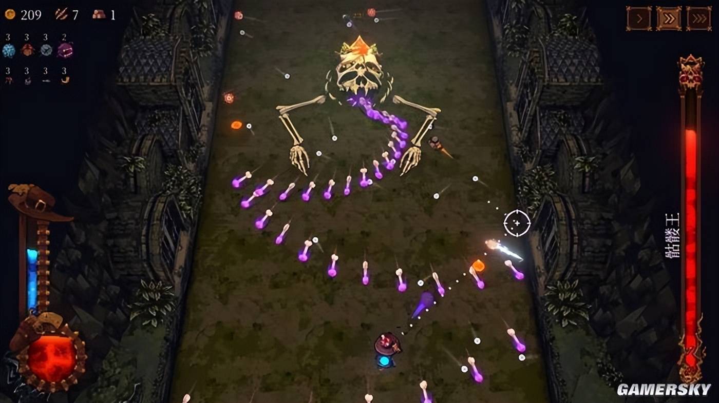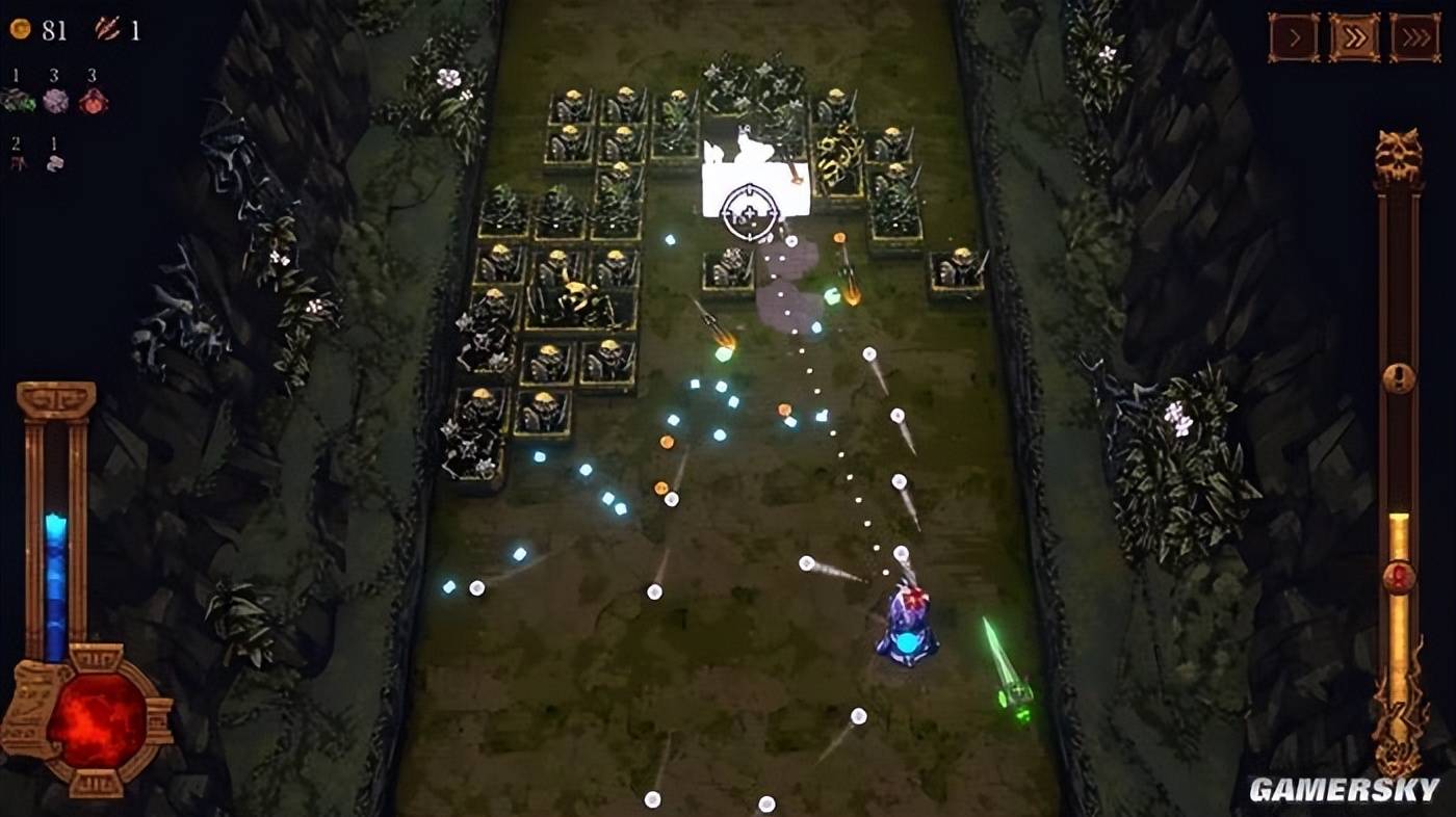 但这也面临着一个问题——你手上的弹珠量是有限的,必须要等它们回到底边被你自动回收后,才能进行下一轮开火。在缝隙内弹跳的弹珠固然输出爆炸,但在它们弹跳的这段时间内,你也完全没有自保能力,一旦有遗漏下来的敌人逼近,你也根本没有足够的火力用来应付它们。