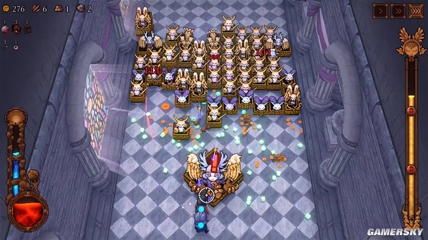 与《吸血鬼幸存者》相似,通过消灭敌人,你就能收集到宝石积攒经验,并通过升级来获得到更多特殊弹珠,拥有更多被动能力,再用它们来对付随时间推移而变得更强、更密集的大军。