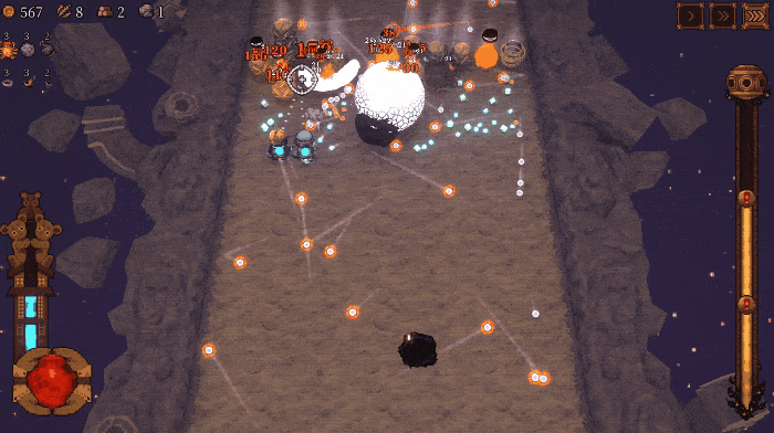 当然我最喜欢的还是游戏后期解锁的极端分子,他的能力是完全自主操作,自主选择升级,相当于为整个游戏新增了一个挂机模式——对于后期需要收集补完,以及反复刷关的玩家来说,这无疑是福音一件。基本上比较简单的关卡,你都可以依赖极端分子的AI自动操作来解决,只有难一些的才需要亲自上马了。