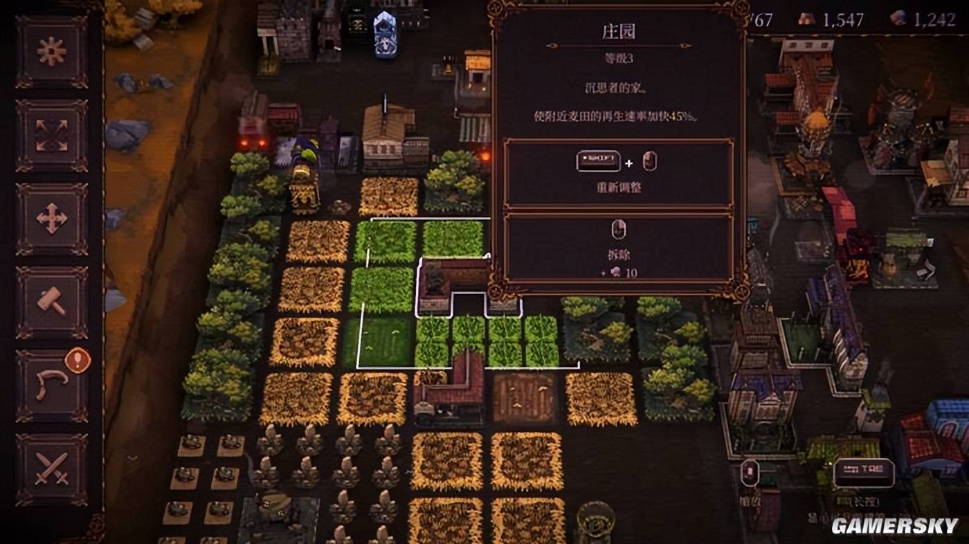 由于每次的采集都有限时,所以如何调整建筑布局,让工人们尽快修好施工中的建筑、并采集到更多资源,也是相当值得研究和思考的一回事——而且有不少建筑在升级之后,都能给资源的再生速度提供加成,这就让你需要像玩城建游戏一样,需要不断考虑什么样的布局有着更高收益。