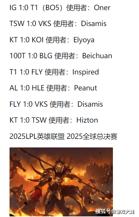 紧随其后,T1对阵FLY,Inspired的皇子遭遇失利;AL对阵HLE时,Peanut也未能扭转皇子局势;FLY再次1:0战胜VKS,Disamis使用皇子继续落败;最后在KT 1:0战胜TSW的比赛中,Hizton的皇子再度未能获胜,八场比赛,八次败北,这样的纪录让皇子在S15赛场上几乎成为“禁用必选”与“翻车警示牌”的双重身份。