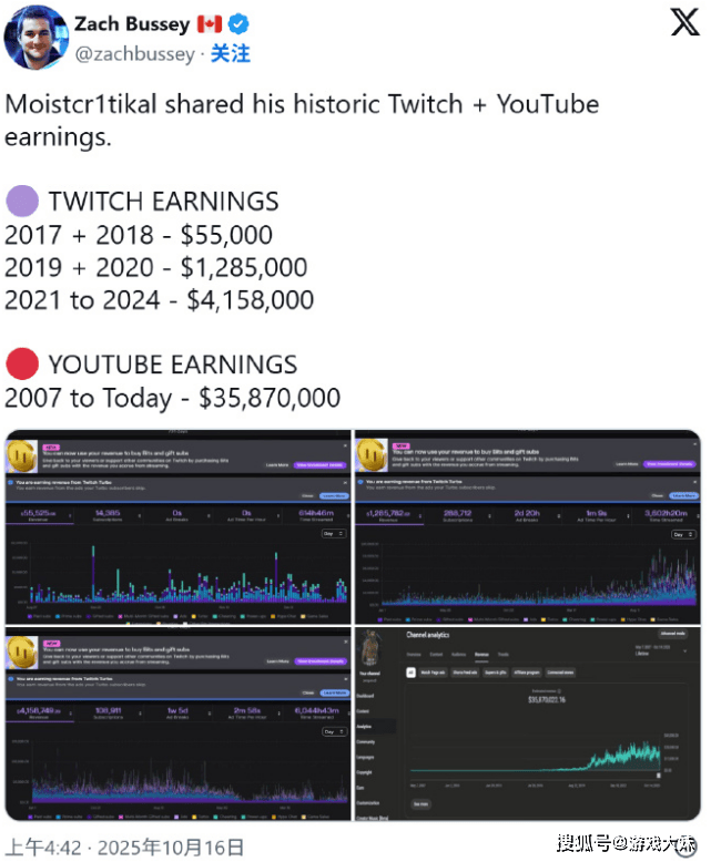 这一举动引发了粉丝和行业内的广泛讨论,也让人们重新审视网络主播与粉丝之间的经济关系,MoistCr1TiKaL在社交平台上解释了自己的动机,他表示,自2017年以来,他在YouTube上已累计赚取超过3500万美元(约合人民币2.5亿元),而这些数字还不包括赞助商合作和品牌代言的收入,实际财富远高于这个数额。