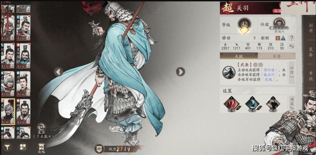 主动技青龙偃月斩:对前排3人造成180%攻击伤害,50%概率眩晕2回合。没叠怒这样伤害会差很多需攒满5点怒气,配合被动武圣降临(怒气满时伤害+50%),暴击能秒脆皮。