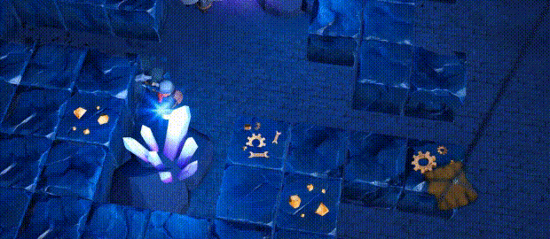 游戏用相同大小的方块来表示所有的矿脉资源,你可以清晰地看到所有可见度范围内的资源种类。在这地底之下,你将亲自拿起矿稿,收集隐藏在石头中的金矿,零件,以及珍贵的宝箱。利用挖到的金矿雇佣更多的工人,壮大你的挖矿队伍;利用零件升级你的防御炮台,抵御汹涌来袭的哥布林,而宝箱将赋予你不同的强大能力,让你的防御或挖矿效率得到提升!