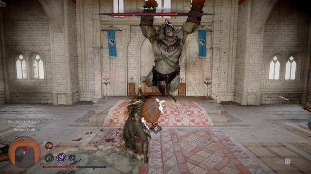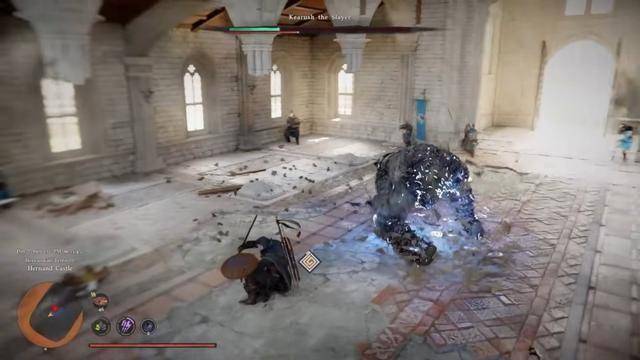 杀戮者基鲁什是一只拥有三条独立生命值的怪物,这种延长战斗的策略在游戏内许多敌人身上都会出现。这场战斗充满“浩克”式的原始暴力,基鲁什能攀爬墙壁,并施展笨拙却破坏力极强的跳跃,誓要将玩家碾碎。作为大型怪物,玩家可以像《龙之信条》那样攀上其背部进行攻击。但必须格外小心:它非常乐意从高处仰面坠落,玩家务必及时从其背上跳下,否则将成为它坠地的“肉垫”。