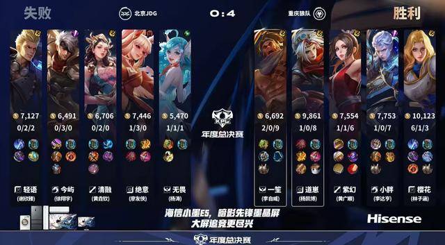 最后一局无畏的朵莉亚开局在河道游泳被逮捕,难道是天气冷了,直径一手冬泳怪鸽。狼队入侵红区,一笙苏烈草里蓄大,配合小胖直接击杀绝意,无畏掉完绝意掉,绝意掉完今屿再掉,大家都干点,谁也别说谁。在中路JDG三打五的情况下清融的杨玉环二闪开戈娅,不可能杀掉。打出了自己的大招,还是被樱花击杀。打到最后感觉JDG心态已经崩了,也不知道该怎么打。杨玉环又是一个二闪上去,交大招后撤被苏烈闪开,今屿的夏侯惇也顶不住,狼队4-0轻松拿下,加起来不到一个小时。