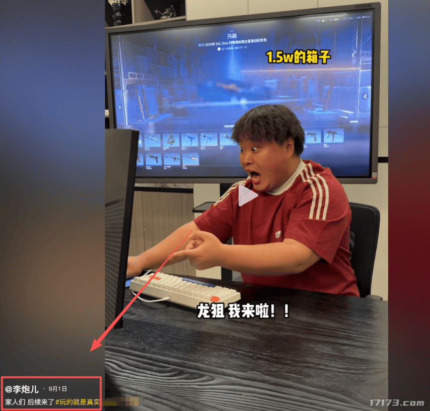 9月1日,李炮儿发布了一则内容是砸1.5万,去《CSGO》这款游戏开箱子,看看能不能赚钱的视频。