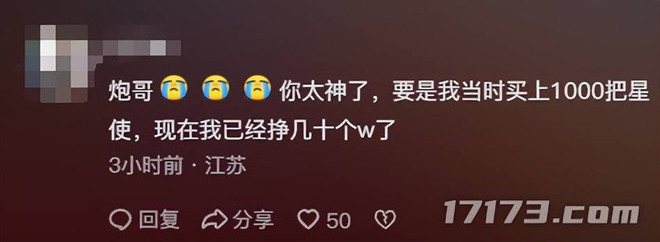 其中,李炮儿在一个月前开出的MP9星使,其价格更是从17块一路飙升至500元!
