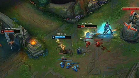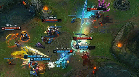 追击过程中TES再击杀一人,后利用先锋连续拆掉两座防御塔,但GEN也拆掉了中路的二塔。
