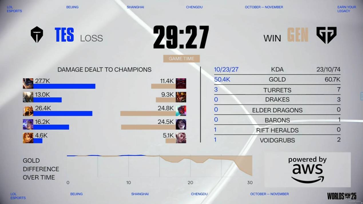 最终GEN是以非常轻松的方式横扫带走TES顺利晋级八强成功。