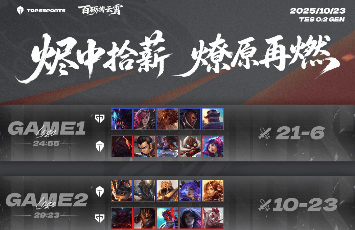 雷竞技S15来到了瑞士轮的后半段,LPL在只剩三支队伍,BLG已经准备面临生死战,TES情况也不乐观,在面对GEN的比赛中,他们被二比零碾压,过程就如同打人机一样,根本没有任何还手的机会。