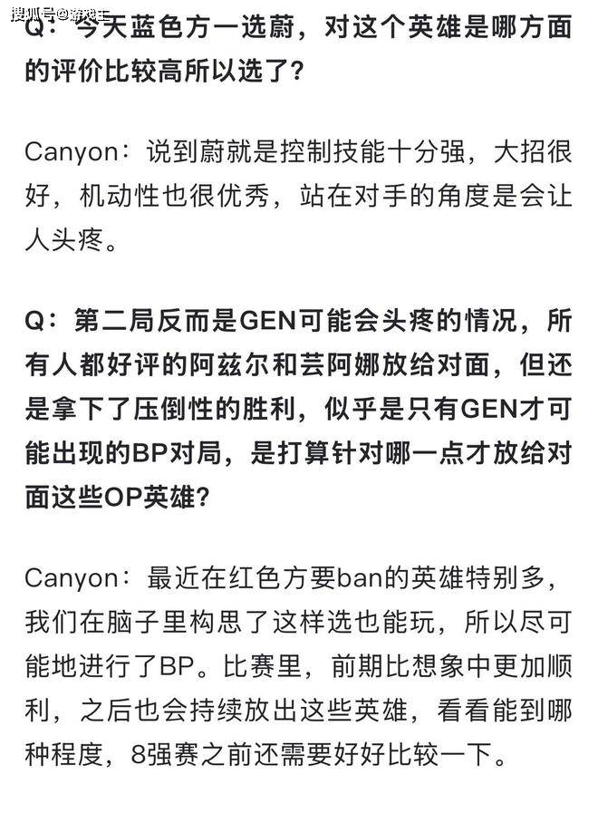 比赛结束之后,gen战队的采访更是让所有的玩家都彻底心凉了,打野选手canyon直接公开表示,在第二局的阵容BP阶段是故意将沙皇和芸阿娜放给tes战队的,想要试一下把这些强势英雄放给他们会打得怎样。没想到还是比较轻松。甚至chovy在采访的时候也公开表示,赛前考虑过Tes战队的强度,同样也没想到比赛会如此快速的获胜。确实,沙皇打永恩前期都被打爆的真不多见。