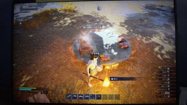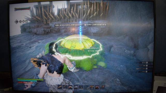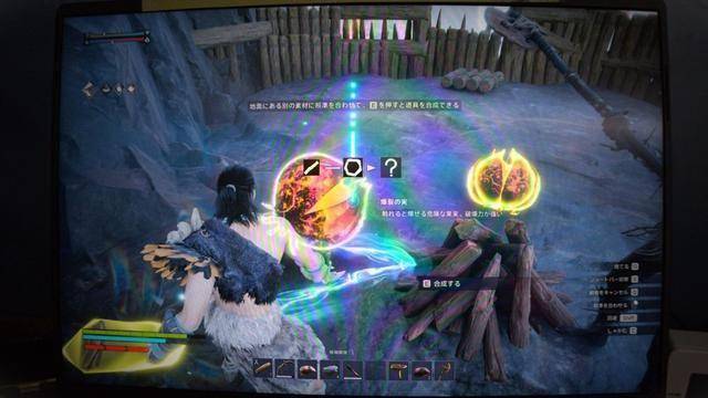 本作的体验不止于破坏与探索。《山外山》中存在组合素材创造出新工具的"合成"系统。将手持木材与场景中的植物等相结合,便能制造出意想不到的物品。UI 也十分直观,通过前述的"观察"确认用途后,只需一个按钮即可瞬间完成合成。此外,试玩中也能确认到部分建筑要素。例如收集木材搭建桥梁,设置掩体防御敌人攻击等。
