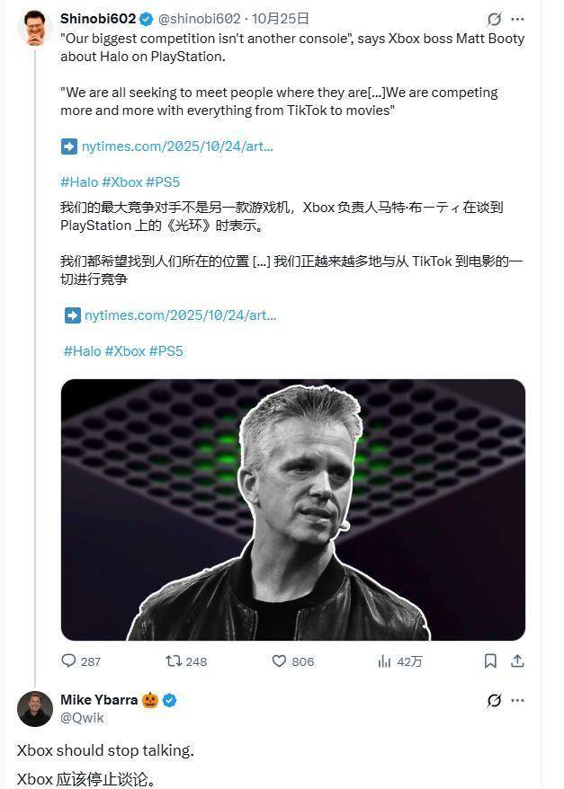 此前,迈克·伊巴拉曾发文支持传统主机独占策略,现在他又通过社交媒体回应Xbox总裁莎拉·邦德关于"独占模式已过时"的论述时指出,任天堂始终通过独占策略保持成功,微软的论断值得商榷。尽管微软坚持认为多平台是行业未来,但索尼与任天堂目前仍凭借独占内容维持市场优势。