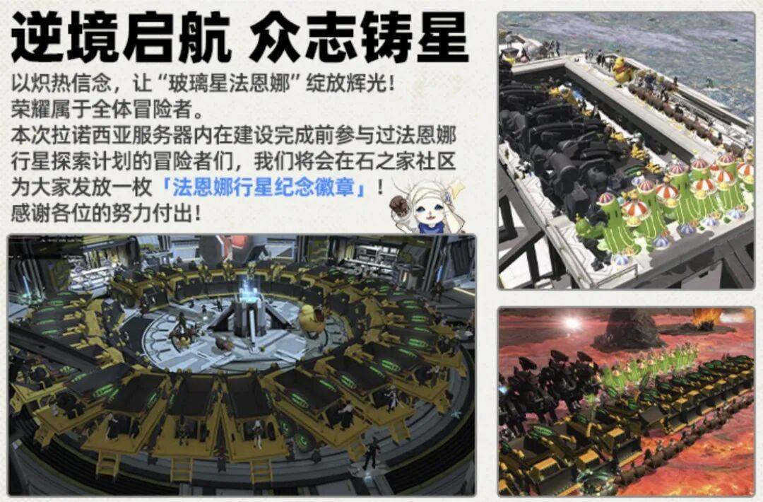 为了纪念拉诺西亚服务器达成全球首通,FF14国区官方也在当天送上了祝贺,并提到将在国服的社区APP石之家里,向本次在拉诺西亚服务器内,在建设完成前参与过法恩娜行星探索计划的玩家们,发放特别的“法恩娜行星纪念徽章”。