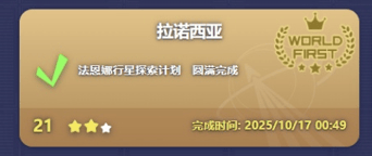 在拉服成为全球第一个速通“法恩娜行星”任务的服务器后,官方也是给足了排面,在网页上为拉服戴上了“World First”(世界第一)的王冠。
