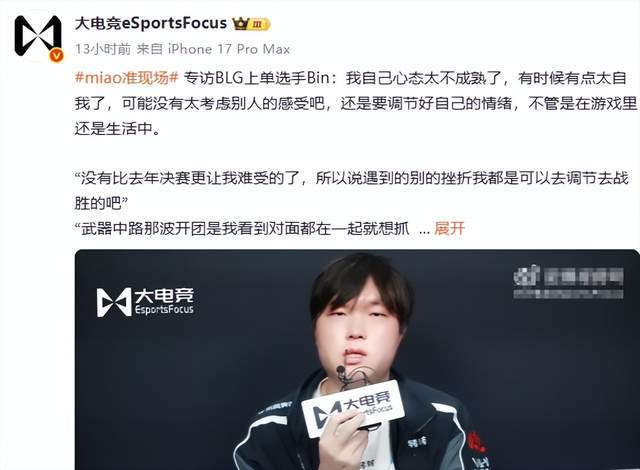 在BLG成16强之后,话题人物Bin也是首次接受了采访,Bin这一次是真的放下了姿态,还坦言承认了,自己有时候太自我了,以后一定要多考虑别人的感受。