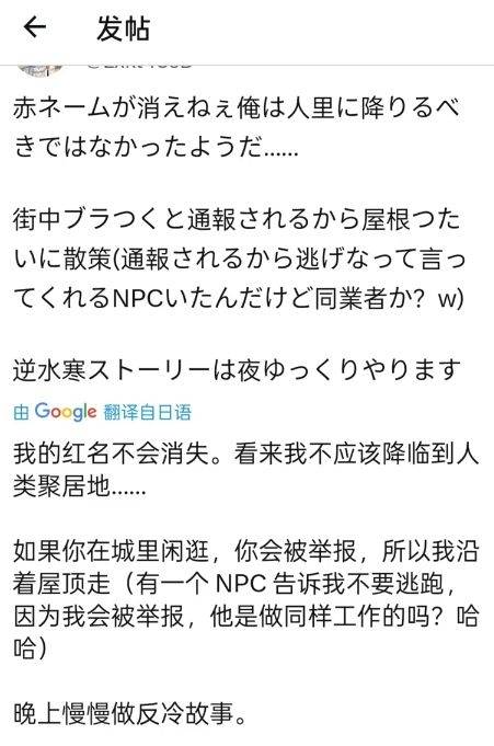 也有的玩家发现了《逆水寒》手游的智能npc玩法,并且体验了一番顶着红名被npc举报的乐趣,进城第一天就被红名悬赏,果然是个好苗子。