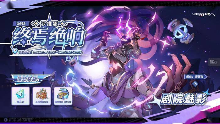 此外,全新玩法活动“终焉绝响(Beta)”也将于11月11日限时开启。“剧院魅影”罗维娜是盘踞在星塔之中的强大存在,她就像一个如影随形的梦魇,在阴影中悄然现身。无人知晓她的过往,也无人目睹她的结局。玩家可以在活动开启后,选择合适的旅人组队,前往挑战不同难度的关卡,赢得豪华奖励。