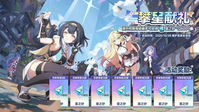 为了纪念首次活动更新,《星塔旅人》为玩家准备了特别纪念奖励“青空礼券×10”;此外,通过提升权限等级最多还可获得“星之砂×12600”,欢迎玩家前来参与活动,享受旅途奇遇!