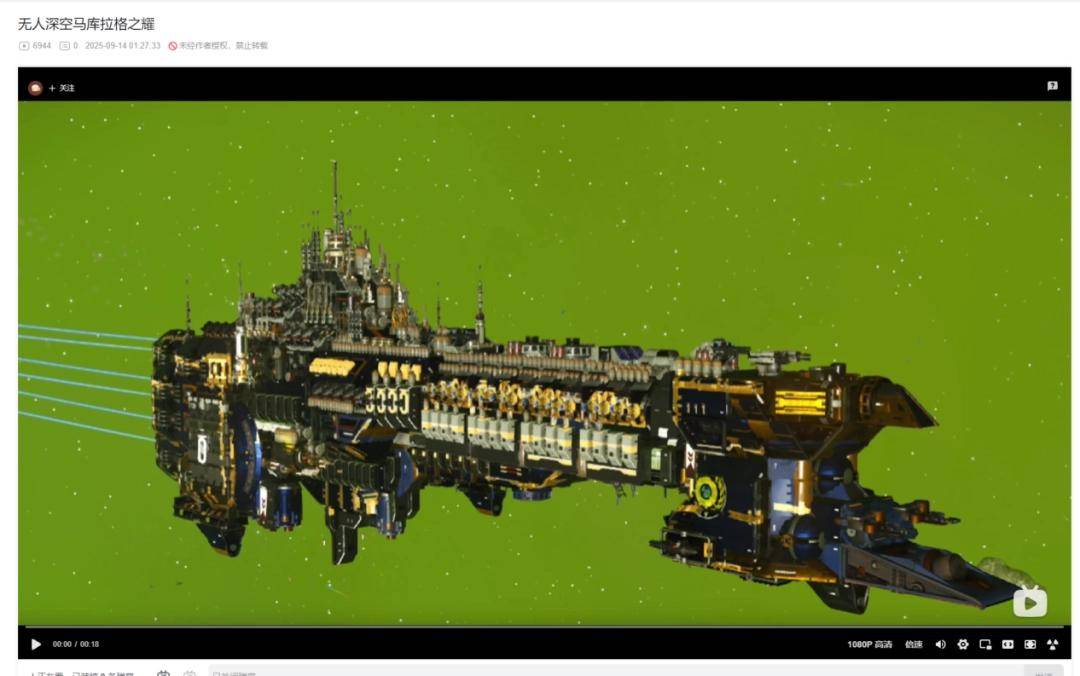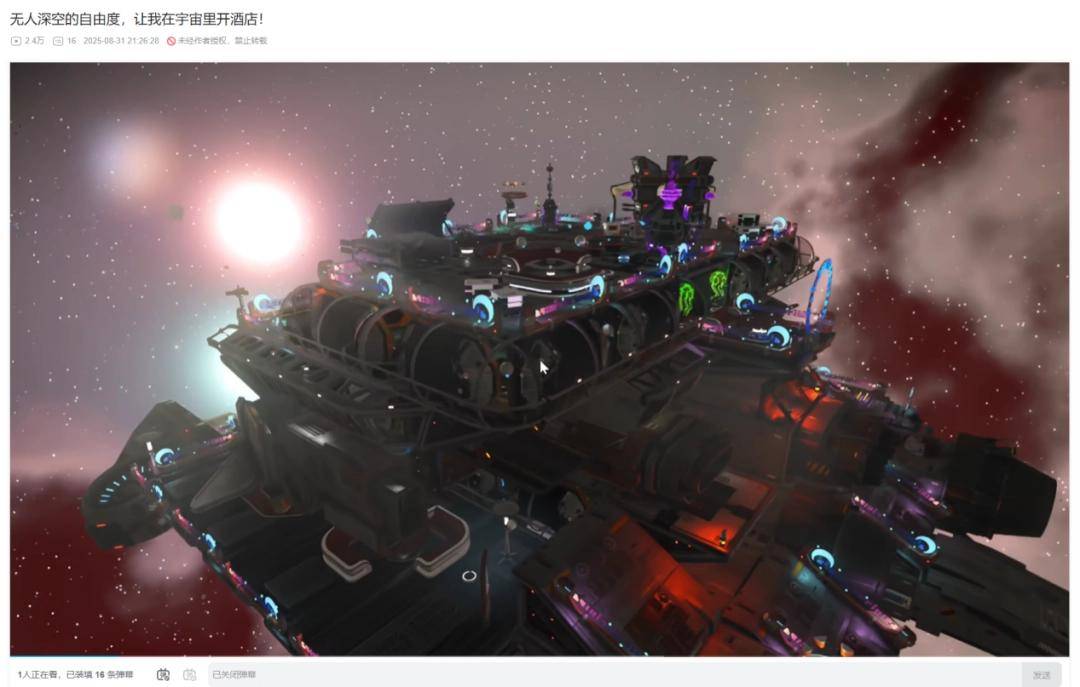 跑图探索地爱上了人车分离式的高空巡航;玩工业的恨不得把一整个产业链都搬上自己的飞船;而建筑党更是狂喜——除了像文章开头那帮子搞抽象的,剩下正经点的有搭超级驱逐舰,在阿特拉斯数字空间上演“地狱潜兵”的。