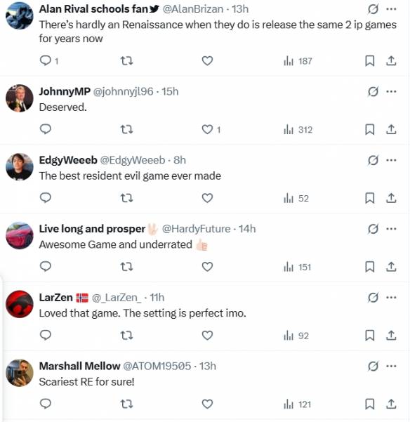 还有玩家称:“《生化危机7》真的是拯救了卡普空,我太高兴它成功了。” 另有玩家赞叹道:“这是有史以来最棒的《生化危机》游戏。”