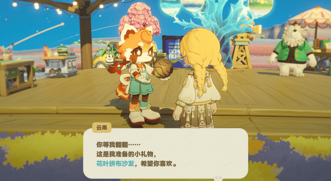 另外,玩家与NPC的交互也足够丰富。比如,当玩家乔迁新家时,友邻们会自发前来祝贺,并且根据自己的喜好来送礼。他们还会互相调侃打趣,随时上演一个小剧场;又比如,友邻每天可能都会有新的烦恼或小发现,当玩家在星球上遇到他们,和他们交谈时,很可能就会解锁一段新的对话。