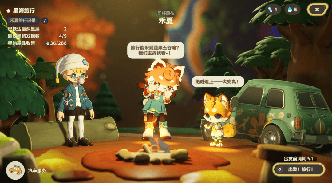 而且,其他星球上除了常规资源以外,还藏了一些谜题。完成解谜或探索后,玩家会获得露珠,它可以升级汽车,从而让玩家向着星海的更深处进发,解锁更多内容,以此形成一个玩法循环。