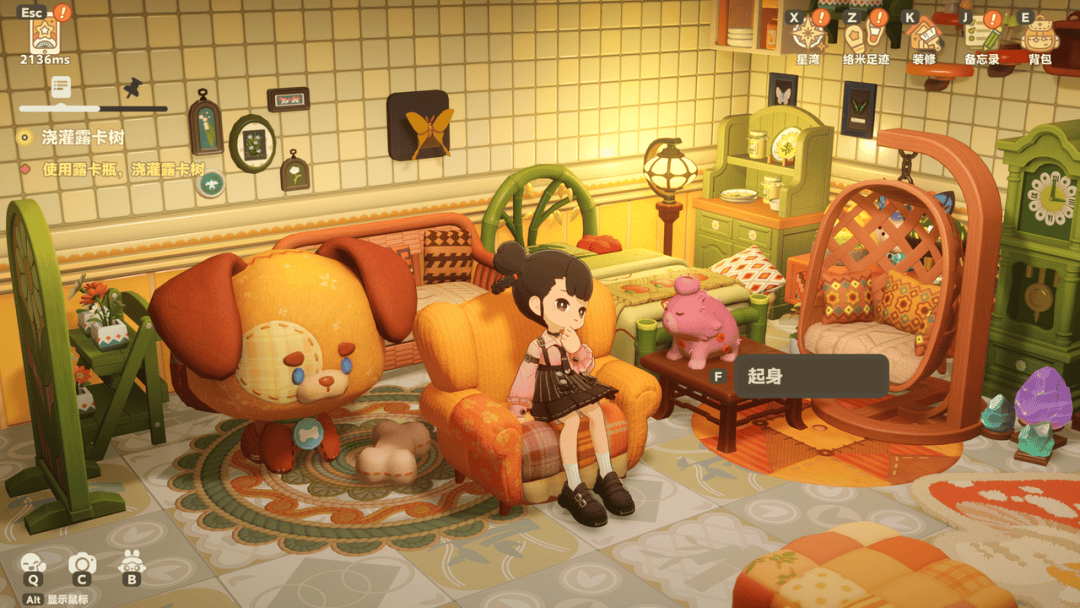 还是熟悉的流程与节奏,开局玩家要从两个不同风格的星球中,选一个来居住。随后便是围绕星球建设所展开的一系列家装、种田、收集、发展友邻 (同住星球上的NPC)、向外探索等玩法,这些都与常规的生活模拟游戏一致。