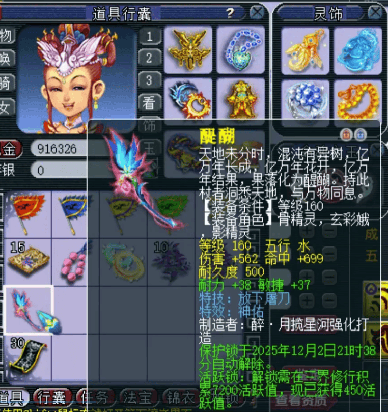 宝哥获得了一件初防147、附加13点耐力的水清衣服。这件装备作为PK必备蓝字之一,市场价值预计超过3亿梦幻币。