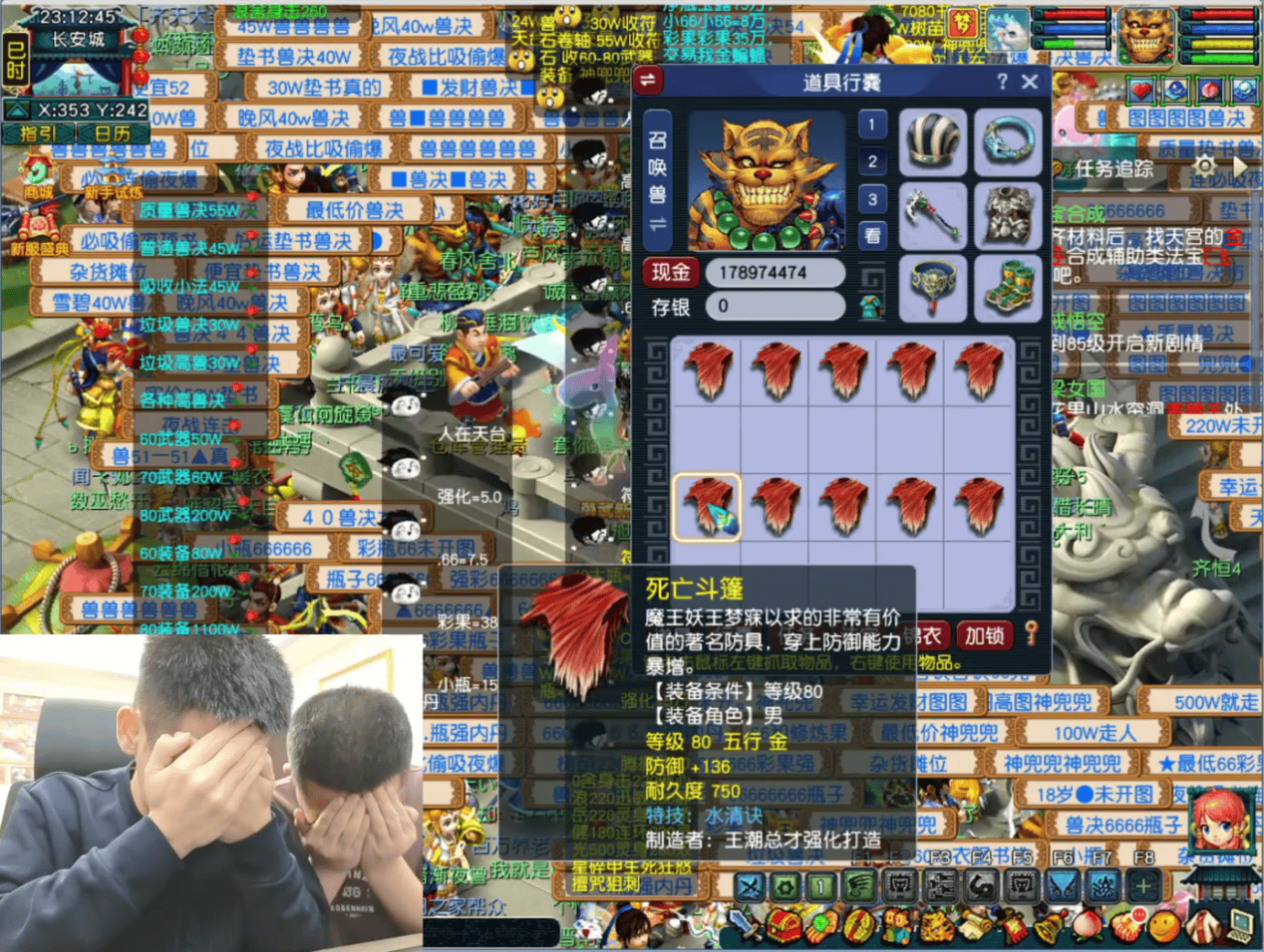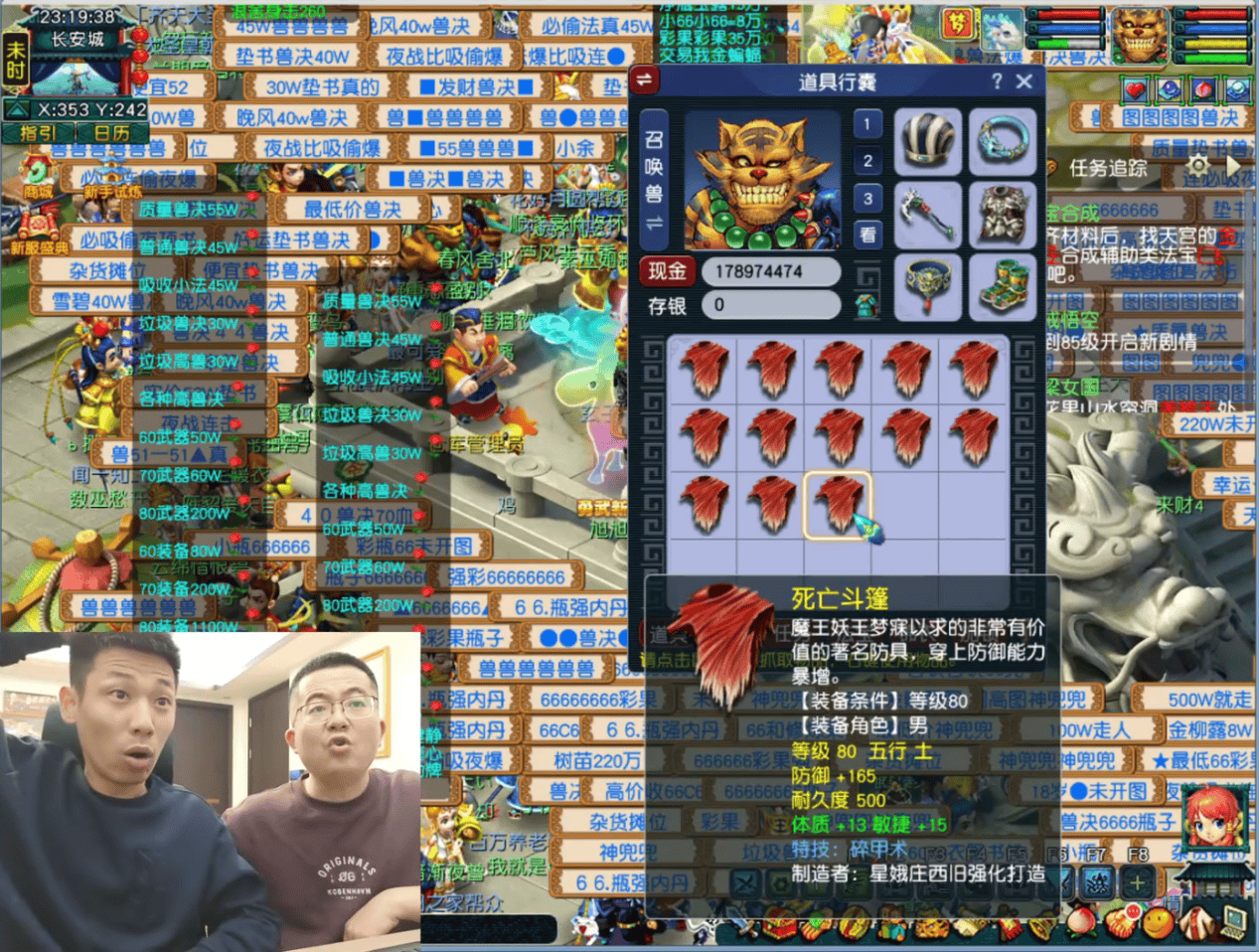 而最引人注目的,莫过于这件初防165、体敏双加28的碎甲铠甲。由于碎甲术可降低对方全体单位的防御,配合狮驼岭等群秒物理系可以起到不错的面伤效果,非常适合队友童话哥地府号使用,宝哥也开玩笑说这件衣服得卖“150头牛”的天价。