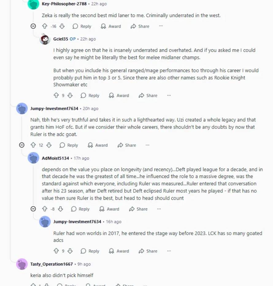 当然也有很多观众觉得Ruler确实比Uzi更配得上历史第一ADC的位置,结合选手的生涯巅峰期,个人荣誉等等来说,Ruler确实非常硬。
