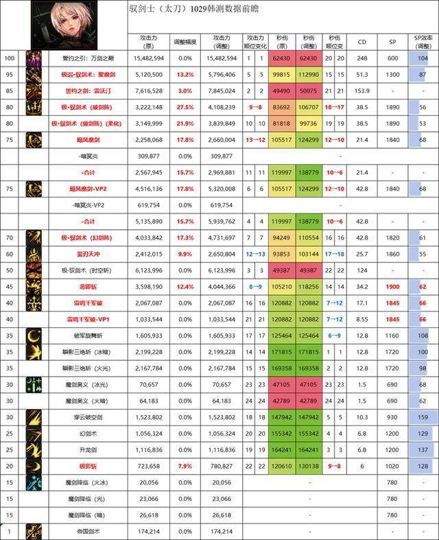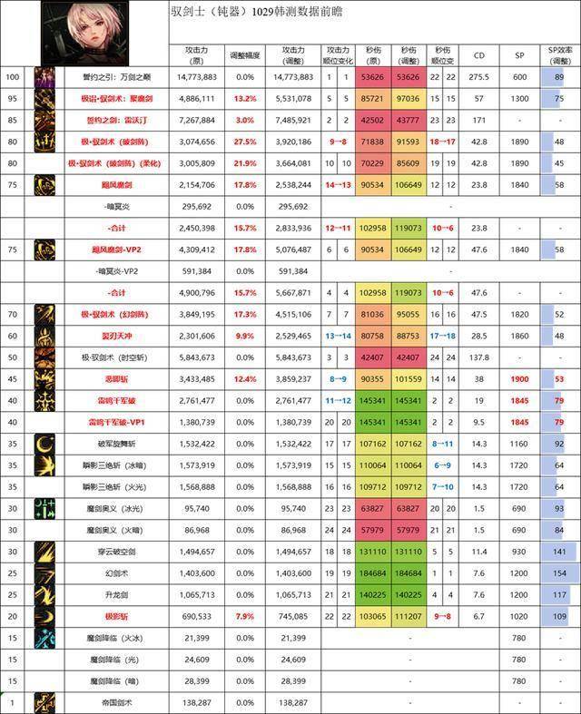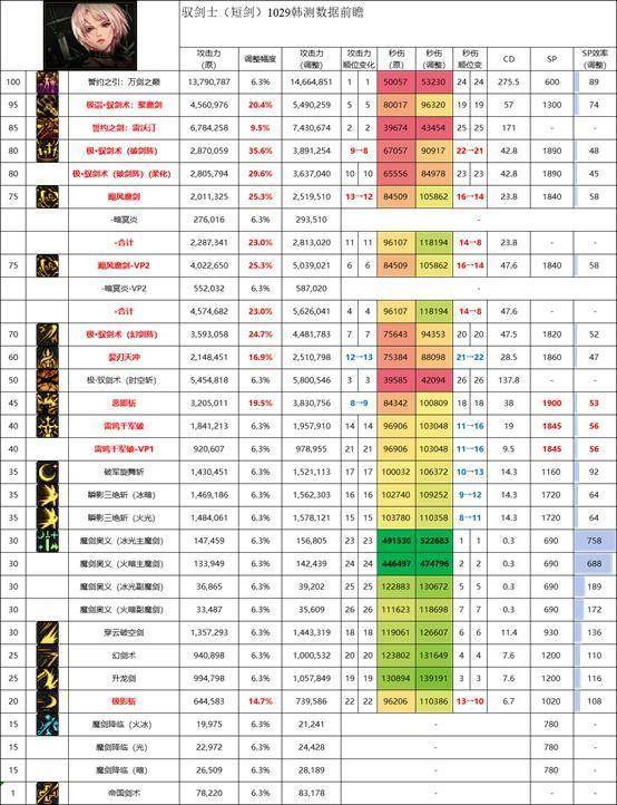 降低了SP投入后SP效率还不错,但非钝器下释放拖沓的问题依旧存在,且单次数据不高,优缺点鲜明,可以考虑投入