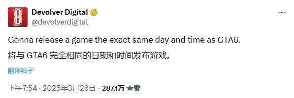 此前,在《GTA6》未公开发售日期时,Devolver Digital就发出“战书”,宣称要在“完全相同的日期和时间”发布一款游戏。《GTA6》首次公布2026年5月26日的发售日后,Devolver Digital立即发帖称:“你无法逃脱我们。2026年5月26日,就是那个时候。”其标志性的口号“你无法逃脱我们”,从一开始就将这场对决定义为一场高调的营销伏击。