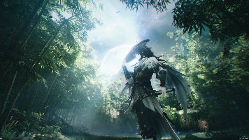下图正是我在竹叶纷飞中捕捉到仇远低头持帽的瞬间,也是拍摄半小时里最满意的一张。这时候就想感叹,要是能加个《无限暖暖》那样的景深模糊效果就好了。