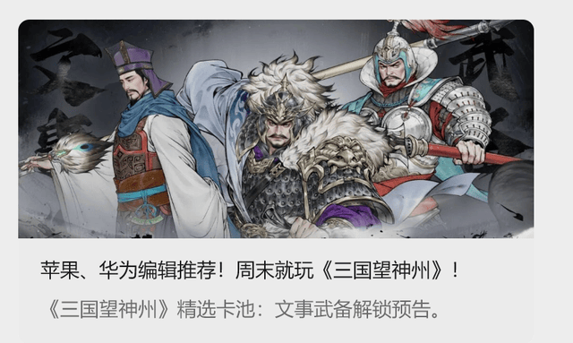 据了解,《三国望神州》是快手旗下弹指宇宙研发的游戏,最近风头无两,不仅公测前大奖拿到手软,上线后更是被苹果、华为联合推荐,可谓今年当之无愧的黑马级爆款。