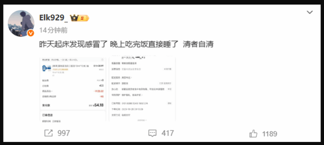 随着事情的持续发酵,不少LPL相关人员赶紧撇清关系,像BLG下路Elk火速发文称自己感冒后就直接睡了,并附上了买药的订单截图。