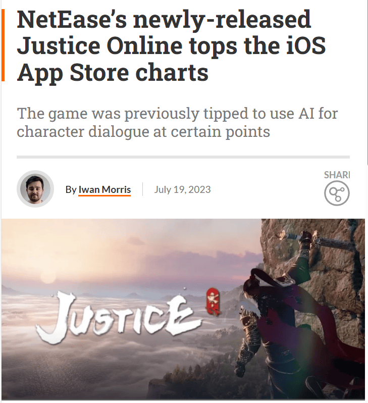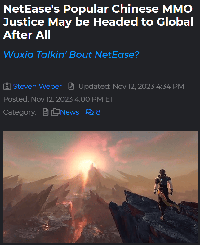 2023年9月,网易注册Sword of Justice商标时,外媒更是紧跟着报道:「网易最火的国风MMO《逆水寒》手游可能终将走向全球」。