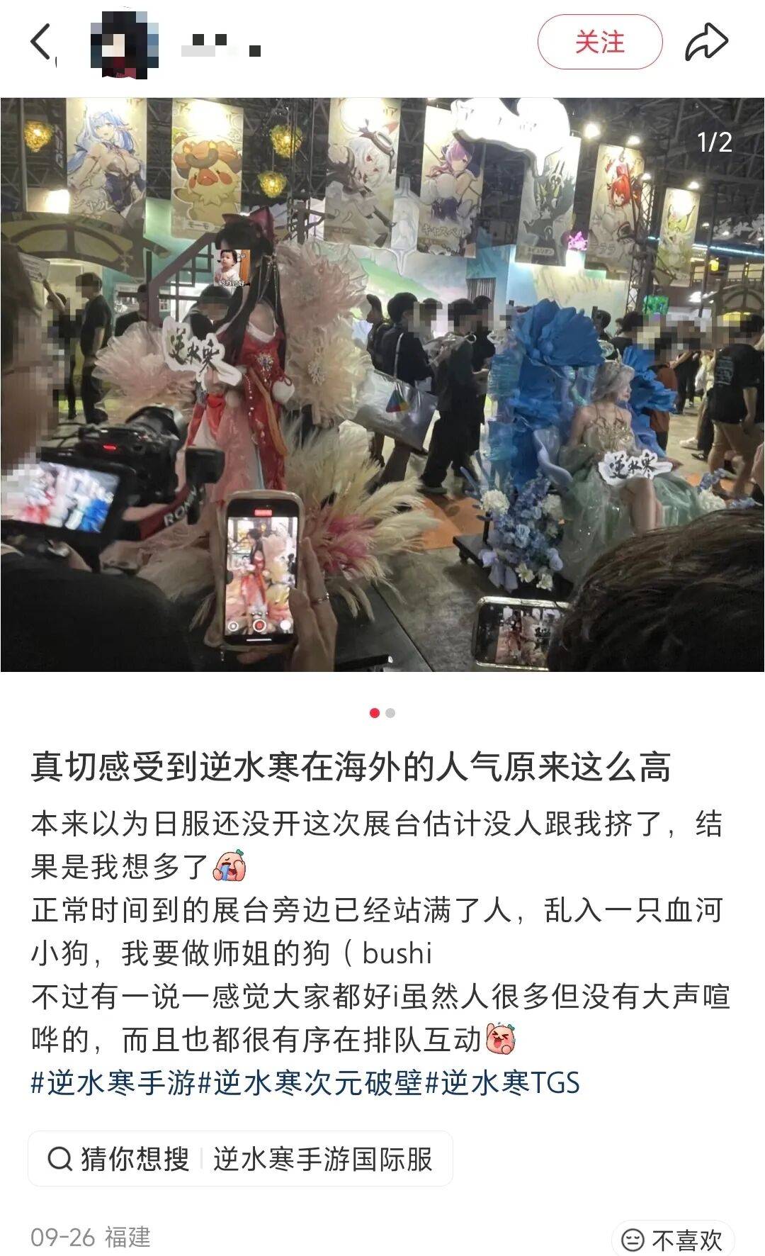 再拿近点的说,今年9月在TGS展会上,作为为数不多参展的国风武侠游戏,《逆水寒》手游展台的热闹程度远超玩家预期——有网友感慨,以为这次没人跟自己挤了,结果到现场却发现全是人。