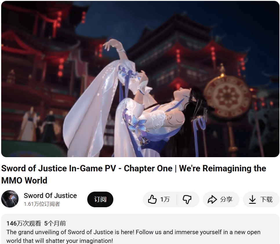 今年5月29日,《逆水寒》手游YouTube官号发布了首个实机PV,视频播放量超过146万次。还有人在评论区直言,自己为这个国际服已经等了良久。