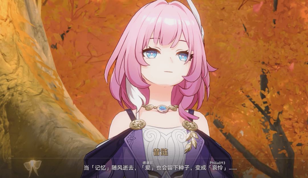 当她以「记忆」的力量回望翁法罗斯,少女梦中模糊的神明、危急时刻投来的目光、昭示着未来的神谕都成为了“定数”,翁法罗斯的一切故事也拥有了完整的因果,而当这趟从终至始的旅程结束后,耗尽力量的昔涟成为了「哀怜」(Philia093)。