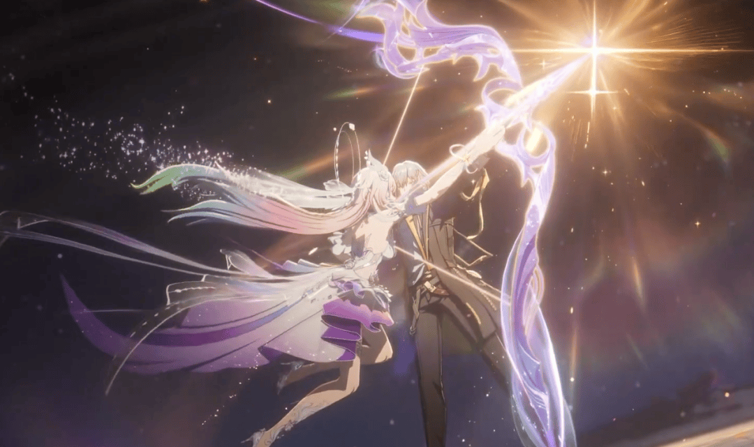 关键时刻,记忆星神「浮黎」投来目光,昔涟拼尽全力用「记忆」冻结了宇宙倾覆的瞬间,而开拓者则在「开拓」的帮助下苏醒了过来,两人共同吸纳了逸散在宇宙中天文数字级的记忆,凭借这样的力量,昔涟暂时升格,成为了翁法罗斯这一方天地的星神,于是,战局扭转,铁墓被击碎后,宇宙终于得以被拯救。