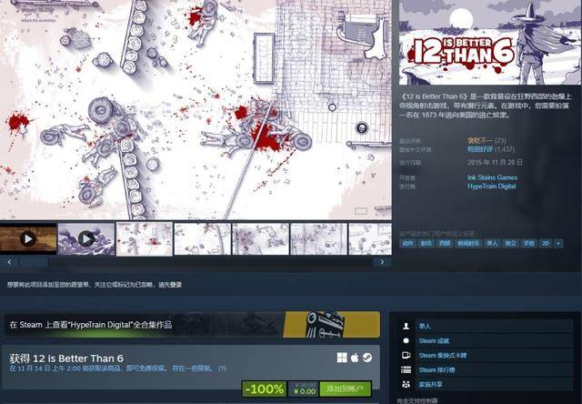 在狂野西部,唯有果断行动方能生存并讲述传奇。而在喜加一的狂野世界里,同样需要眼疾手快——HypeTrain Digital现正限时赠送俯视角射击游戏《12比6好(12 is Better Than 6)》,速领即可永久入库。