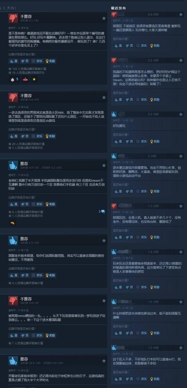 据Steam商店页显示,《逆水寒手游》在Steam上的评价数为1072条,好评率为51%,游戏总评为“褒贬不一”。有人表示剧情还行,但是这手游UI真难崩。画面挺好,配音也还行,但是bug一堆。