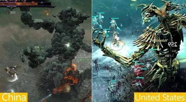 最核心的改动在于血液效果的完全消失。攻击时不再出现熟悉的红色飞溅效果,取而代之的是类似尘埃的半透明棕色粒子。此外,开发人员还修改了关键Boss——巨型骷髅在国内版本中以魔像形态登场。普通骷髅敌人以及尸体也被替换为了石像或是稻草人。此外,还有部分过场剧情直接被语言文字替代的现象出现。