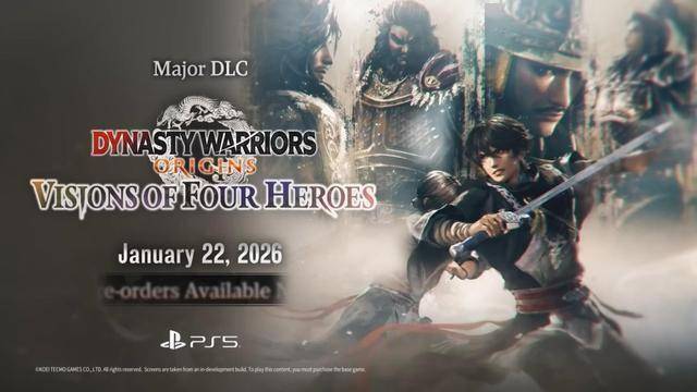 今日(11月12日)State of Play发布会上,《真三国无双:起源》DLC“梦幻四英杰”公布。DLC将于2026年1月22日上线,官方还发布新预告,一起来看看吧!