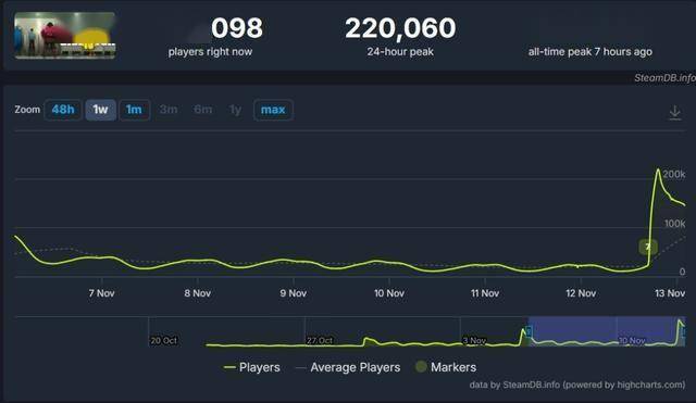 自10月22日发布以来,《超英派遣中心》已成为2025年最畅销的项目之一:发售仅十天内销量就超过一百万份。分集发行的模式持续取得成功:Steam上的同时在线玩家峰值数从发布时的超过12,000人,增至赛季中期的66,000人,并在第5、6集发布时突破了131,000人。而最终章节的发布则让该游戏在Steam的在线人数超过了22万。