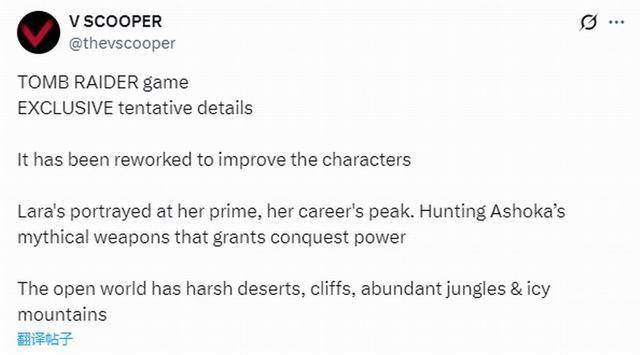 V scooper表示,劳拉将以巅峰状态登场,她正值职业生涯黄金期,将追寻印度古代阿育王的神话武器。这些武器拥有征服世界的强大力量。新作的开放世界将包含严酷沙漠、悬崖峭壁、茂密丛林和冰封山脉等场景 。
