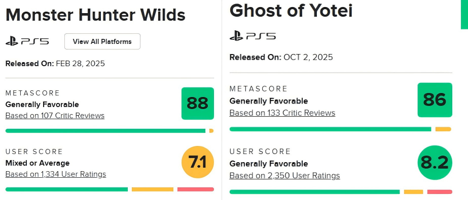 你看今年明明是个传统意义上的「游戏大年」,有着诸多大制作、画面精良的传统3A游戏,结果不少产品连年度提名都没有进,比如说《怪物猎人荒野》和《羊蹄山之魂》。